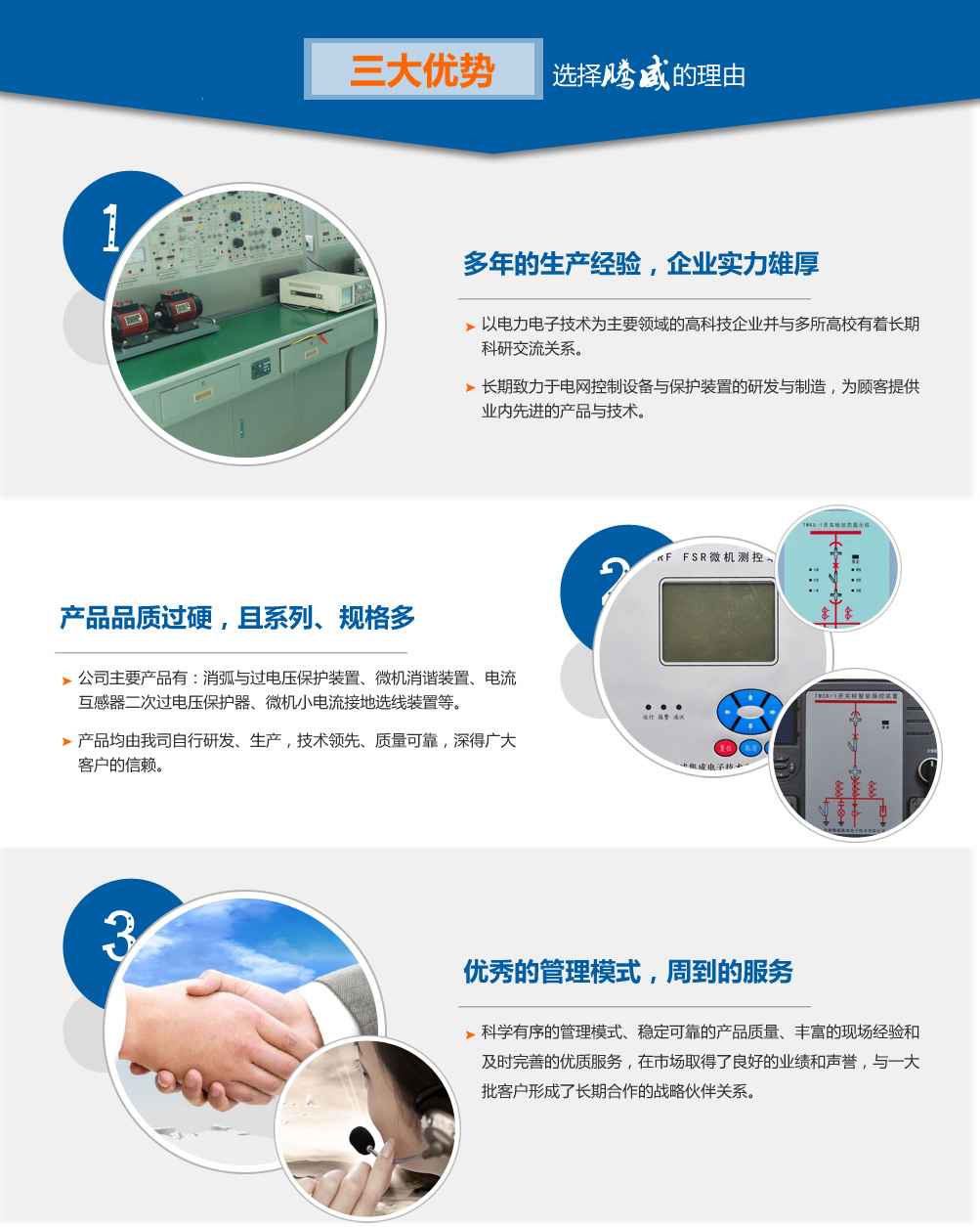 合肥騰威集成電子技術(shù)有限公司是一家以電力電子技術(shù)為主要領域的高科技企業(yè),坐落于國家科技創(chuàng)新型城市合肥,與多所高校有著長期科研交流關系。 公司長期致力于電網(wǎng)控制設備與保護裝置的研發(fā)與制造,為顧客提供業(yè)內(nèi)先進的產(chǎn)品與技術(shù)。公司主要產(chǎn)品有:消弧與過電壓保護裝置、微機消諧裝置、電流互感器二次過電壓保護器、微機小電流接地選線裝置、微機電壓綜合保護裝置(抑制柜/聚優(yōu)柜控制器)、開關柜智能操控裝置、開關柜無線測溫裝置、電網(wǎng)運行設備在線絕緣監(jiān)測裝置、可恢復式爆炸橋控制器、中性點接地電阻柜微機測控裝置等。以上產(chǎn)品均由我司自行研發(fā)、生產(chǎn),質(zhì)量可靠,深得廣大客戶的信賴。 公司憑借科學有序的管理模式、穩(wěn)定可靠的產(chǎn)品質(zhì)量、豐富的現(xiàn)場經(jīng)驗和及時完善的服務,在市場取得了良好的業(yè)績和聲譽,與一大批客戶形成了長期合作的戰(zhàn)略伙...更多>